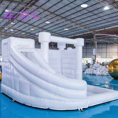 بيت White Bounce House Combo هو منشأة ترفيهية في الهواء الطلق أو الداخلي مصممة خصيصًا للأطفال.إنه يجمع بين منزل قذف قابل للنفخ مع عناصر ترفيهية أخرى مثل المنزلقات وأطر التسلق لتوفير مساحة ترفيهية شاملة للأطفال.